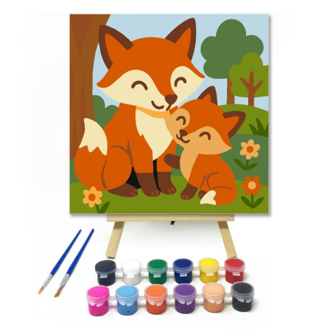 1 kép Számfestő.hu Mosolygós Rókacsalád a Ligetben - gyerek számfestő készlet