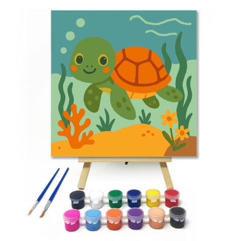 1 kép Számfestő.hu Mosolygós Teknősbébi a Tenger Mélyén - gyerek számfestő készlet