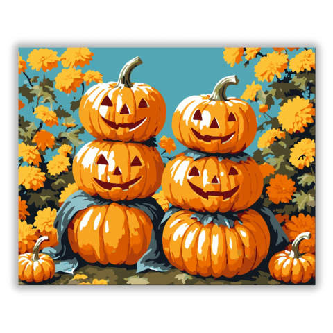 1 kép Számfestő.hu Mosolygós töklámpások virágok között - számfestő készlet