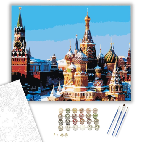 Moszkva - Vörös Tér - számfestő készlet – 40×50 cm (Keretre feszítve) Készíts gyönyörű műalkotásokat, előzetes festő tudás nélkül! Éld át az alkotás gyönyörű pillanatait és varázslatos hangulatát! Akkor is gyönyörű festményeket hozhatsz létre, ha még nem