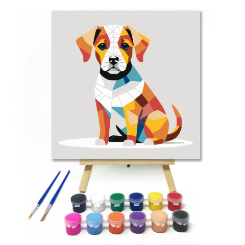 1 kép Számfestő.hu Mozaikos kutyakép - gyerek számfestő készlet – 20×20 cm (Keretre feszítve)