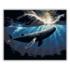 Napfényben Fürdő Bálna - számfestő készlet – 40×50 cm (Keret nélkül) A festmény egy monumentális bálnát ábrázol, amint a vízfelszín közelében úszik, körülötte a nap sugarai áttörnek a vízen. A kép mélykék és aranyló fények kontrasztjával teremti meg a nyu