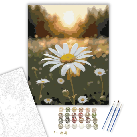 1 kép Számfestő.hu Napfényben Ringatózó Fehér Margaréta - számfestő készlet – 40×50 cm (Keretre feszítve)