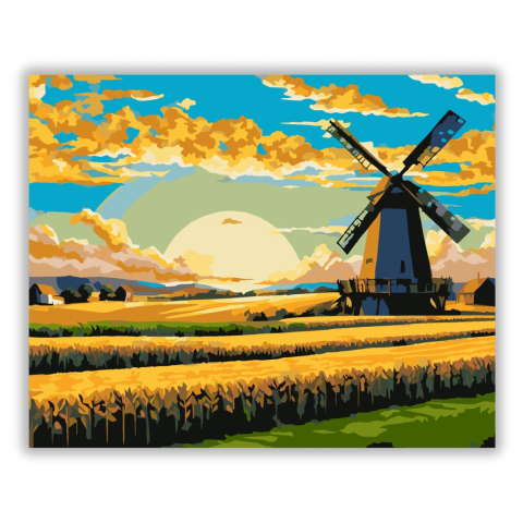 1 kép Számfestő.hu Naplemente a Búzamezőn Szélmalommal - számfestő készlet