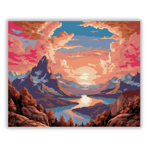 1 kép Számfestő.hu Naplemente a Hegyek Felett - számfestő készlet