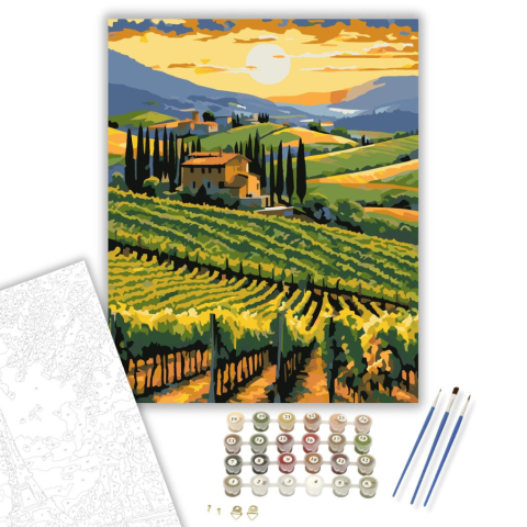 1 kép Számfestő.hu Naplemente a Toszkán Szőlőskertben - számfestő készlet – 40×50 cm (Keretre feszítve)