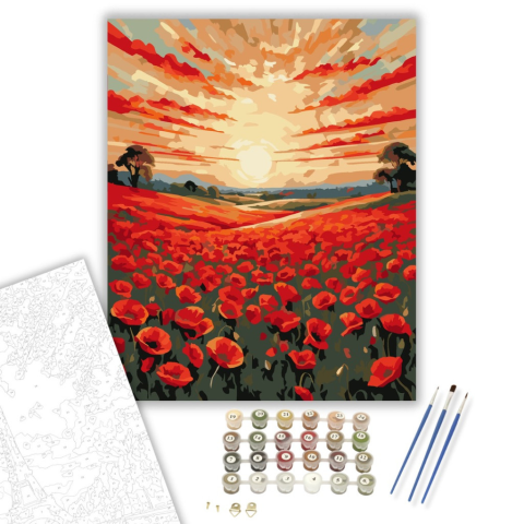 1 kép Számfestő.hu Naplemente Pipacsmező - számfestő készlet – 40×50 cm (Keretre feszítve)