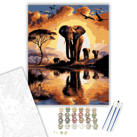 1 kép Számfestő.hu Naplementei Elefántok a Folyóparton - számfestő készlet – 40×50 cm (Keretre feszítve)