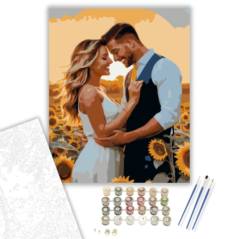 1 kép Számfestő.hu Naplementés Eljegyzés Napraforgómezőn - számfestő készlet – 40×50 cm (Keretre feszítve)