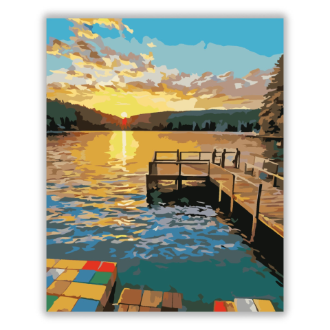 1 kép Számfestő.hu Naplementés Tóparti Stég - számfestő készlet