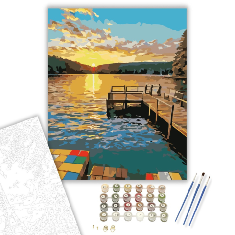 1 kép Számfestő.hu Naplementés Tóparti Stég - számfestő készlet – 40×50 cm (Keretre feszítve)