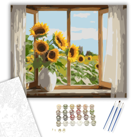 1 kép Számfestő.hu Napraforgók az Ablakban - számfestő készlet – 40×50 cm (Keretre feszítve)