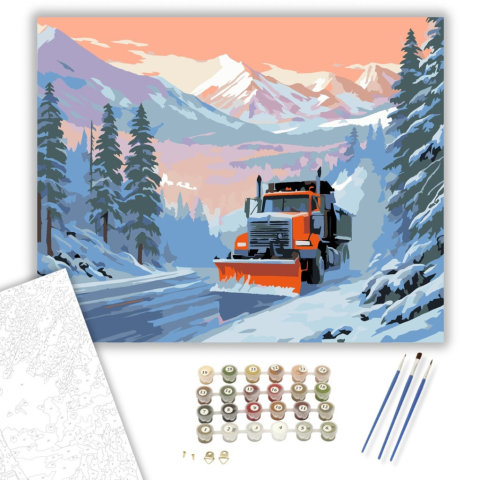 1 kép Számfestő.hu Narancssárga Hókotró Hegyi Úton - számfestő készlet – 40×50 cm (Keretre feszítve)