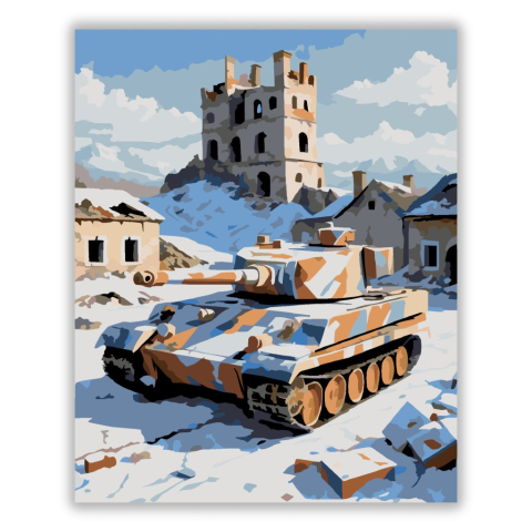 1 kép Számfestő.hu Német Tiger I Tank Havas Romok Között - számfestő készlet