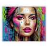 Neon Könnyek és Graffiti Textúrák - számfestő készlet – 40×50 cm (Keret nélkül) A festmény egy női portrét ábrázol, ahol neon színű könnyek folynak az arcán, amely graffitire emlékeztető ecsetvonásokkal bomlik szét. Az élénk fukszia, elektromos kék, lime