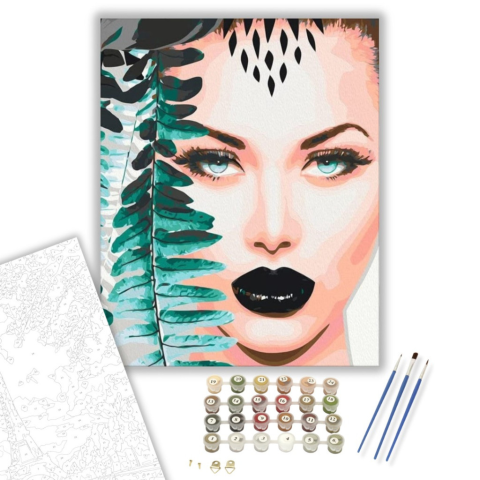 Nő Páfránnyal - számfestő készlet – 40×50 cm (Keretre feszítve) Készíts gyönyörű műalkotásokat, előzetes festő tudás nélkül! Éld át az alkotás gyönyörű pillanatait és varázslatos hangulatát! Akkor is gyönyörű festményeket hozhatsz létre, ha még nem festet