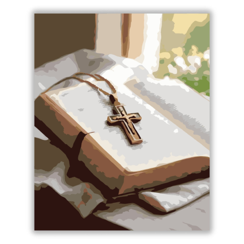 1 kép Számfestő.hu Nyitott Biblia és Kereszt - számfestő készlet