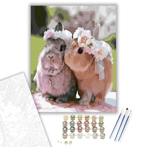 1 kép Számfestő.hu Nyuszi pár - számfestő készlet – 40×50 cm (Keretre feszítve)