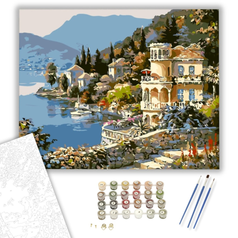 1 kép Számfestő.hu Olasz Tengerparti Város - számfestő készlet – 40×50 cm (Keretre feszítve)