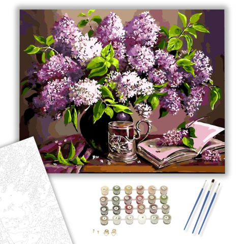 Orgona Virág - számfestő készlet – 40×50 cm (Keretre feszítve) Ez a festmény nyugalmat és eleganciát áraszt, mintha egy csendes tavaszi délutánon sétálnánk. A képen megelevenedő történet magával ragadja a nézőt, ahogy a virágok életre kelnek. A lila és zö