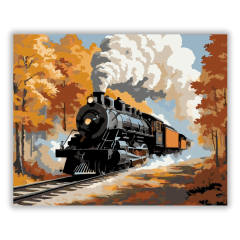 1 kép Számfestő.hu Őszi Erdőn Átszáguldó Gőzmozdony - számfestő készlet