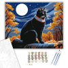 Őszi Holdfény Macskaszemmel - számfestő készlet – 40×50 cm (Keretre feszítve) Fedezd fel a káprázatos őszi tájat ezen a festményen, ahol egy elegáns fekete macska ül a kőn, szemlélődve a holdfényes éjszakát. A ragyogó narancs és arany levelek élénk kontra