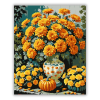 Őszi Pompa - számfestő készlet – 40×50 cm (Keret nélkül) Ez a festői számfestő készlet gazdagon ábrázolja az ősz színeit pompás krizantémok és tökök formájában, ami tökéletes dekoráció bármely otthonba vagy irodába. A vibráló narancs és sárga árnyalatok,