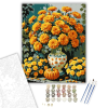 Őszi Pompa - számfestő készlet – 40×50 cm (Keretre feszítve) Ez a festői számfestő készlet gazdagon ábrázolja az ősz színeit pompás krizantémok és tökök formájában, ami tökéletes dekoráció bármely otthonba vagy irodába. A vibráló narancs és sárga árnyalat