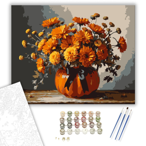 1 kép Számfestő.hu Őszi virágkompozíció tök vázában - számfestő készlet – 40×50 cm (Keretre feszítve)
