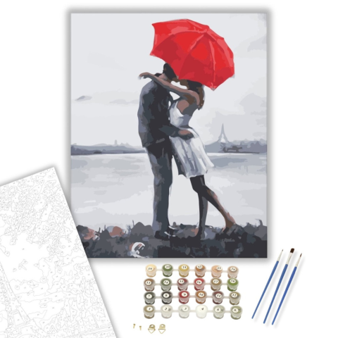 Őszinte Szeretet - számfestő készlet – 40×50 cm (Keretre feszítve) Ez a festmény egy romantikus pillanatot ragad meg, amelyben a nézőt az őszinte érzelmek világa ragadja magával. A háttér sejtelmes homályossága egy történetet mesél el, ahol minden részlet