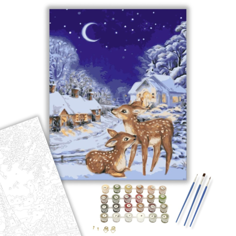 1 kép Számfestő.hu Őzikék a hóban - számfestő készlet – 40×50 cm (Keretre feszítve)