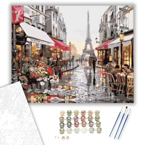 Párizs Eső Után - számfestő készlet – 40×50 cm (Keretre feszítve) Készíts gyönyörű műalkotásokat, előzetes festő tudás nélkül! Éld át az alkotás gyönyörű pillanatait és varázslatos hangulatát! Akkor is gyönyörű festményeket hozhatsz létre, ha még nem fest