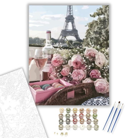 Párizsban jártam - számfestő készlet – 40×50 cm (Keretre feszítve) Ez a festmény egy romantikus délutánt idéz meg Párizs szívében, ahol a város varázsa és az érzékek harmóniája találkozik. A kép mesél egy elbűvölő piknikről az Eiffel-torony árnyékában, ah