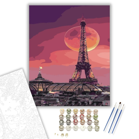 Párizsi est - számfestő készlet – 40×50 cm (Keretre feszítve) Készíts gyönyörű műalkotásokat, előzetes festő tudás nélkül! Éld át az alkotás gyönyörű pillanatait és varázslatos hangulatát! Akkor is gyönyörű festményeket hozhatsz létre, ha még nem festetté
