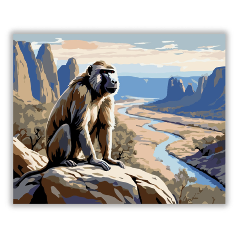 1 kép Számfestő.hu Pávián a Sziklás Folyóparton - számfestő készlet