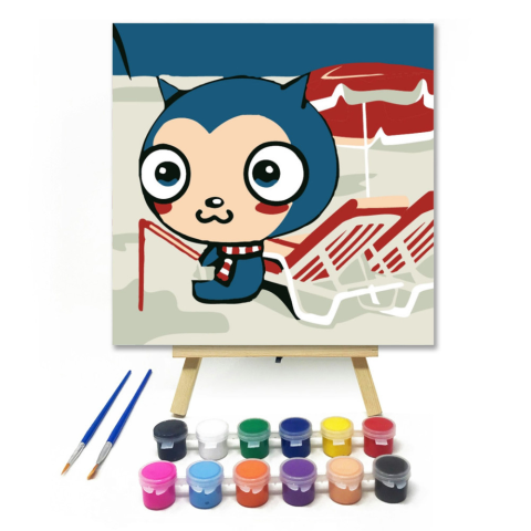 Pecázás - gyerek számfestő készlet – 20×20 cm (Keretre feszítve) Ez a vidám kép egy kedves kis cicafigurát ábrázol, aki éppen pecázik egy színes stégen. A bájos piros és kék színek igazán barátságossá varázsolják a jelenetet. Tökéletes választás a gyereke