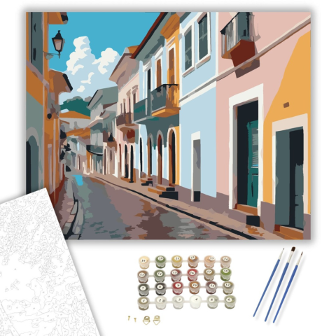 1 kép Számfestő.hu Pelourinho Színes Koloniális Utca - számfestő készlet – 40×50 cm (Keretre feszítve)