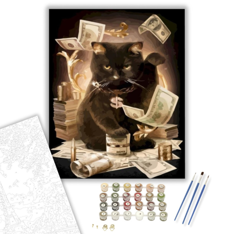1 kép Számfestő.hu Pénzes cica - számfestő készlet – 40×50 cm (Keretre feszítve)