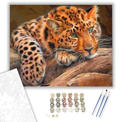 1 kép Számfestő.hu Pihenő leopárd - számfestő készlet – 40×50 cm (Keretre feszítve)