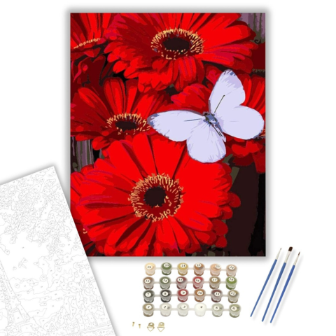 1 kép Számfestő.hu Pillangó piros virágokon - számfestő készlet – 40×50 cm (Keretre feszítve)