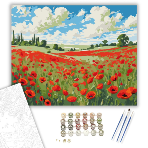1 kép Számfestő.hu Pipacsmező Felhős Égbolt Alatt - számfestő készlet – 40×50 cm (Keretre feszítve)
