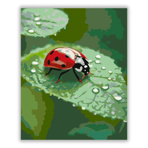 1 kép Számfestő.hu Piros Katicabogár Harmatos Levélen - számfestő készlet