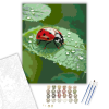 1 kép Számfestő.hu Piros Katicabogár Harmatos Levélen - számfestő készlet – 40×50 cm (Keretre feszítve)
