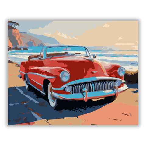 1 kép Számfestő.hu Piros Klasszikus Cabrio a Tengerparti Sziklánál - számfestő készlet