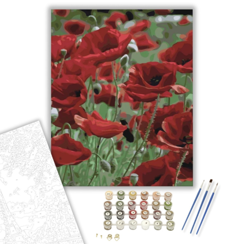 1 kép Számfestő.hu Piros vadvirágok - számfestő készlet – 40×50 cm (Keretre feszítve)