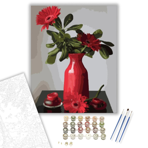 1 kép Számfestő.hu Piros virágok - számfestő készlet – 40×50 cm (Keretre feszítve)