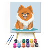 Pompás pufi pofi - gyerek számfestő készlet – 20×20 cm (Keretre feszítve) Ez a kép egy vidám, pufók kutyust ábrázol, aki mosolyogva ül egy kék háttér előtt. A barátságos narancs és fehér színek varázslatos hangulatot teremtenek. Tökéletes kezdés egy színe