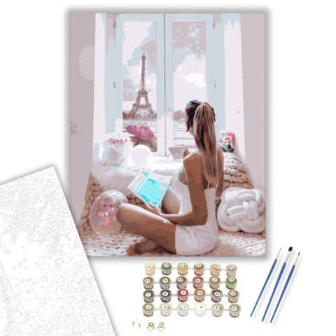 Reggel Párizsban - számfestő készlet – 40×50 cm (Keretre feszítve) Készíts gyönyörű műalkotásokat, előzetes festő tudás nélkül! Éld át az alkotás gyönyörű pillanatait és varázslatos hangulatát! Akkor is gyönyörű festményeket hozhatsz létre, ha még nem fes