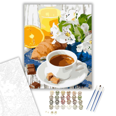 Reggeli fehér virágokkal - számfestő készlet – 40×50 cm (Keretre feszítve) Készíts gyönyörű műalkotásokat, előzetes festő tudás nélkül! Éld át az alkotás gyönyörű pillanatait és varázslatos hangulatát! Akkor is gyönyörű festményeket hozhatsz létre, ha még