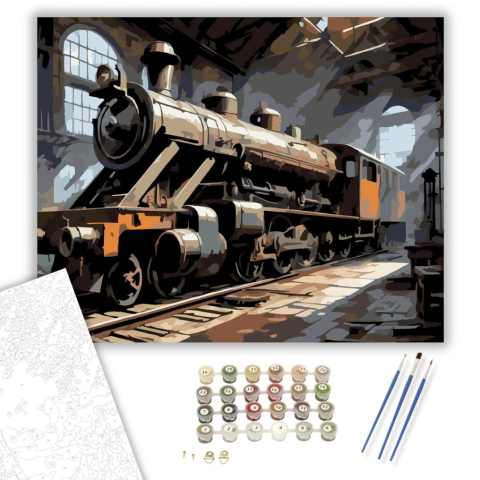 1 kép Számfestő.hu Régi Mozdony Műhelyben - számfestő készlet – 40×50 cm (Keretre feszítve)